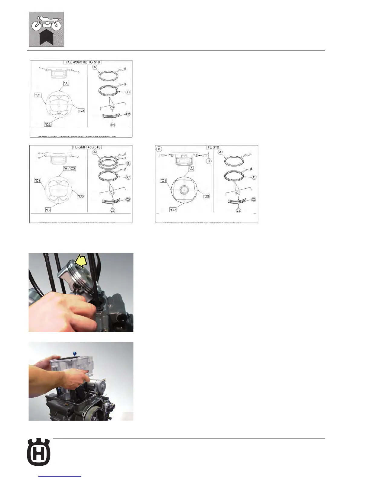 oil and install the piston pin circlips. Make sure that the arrow on the piston is