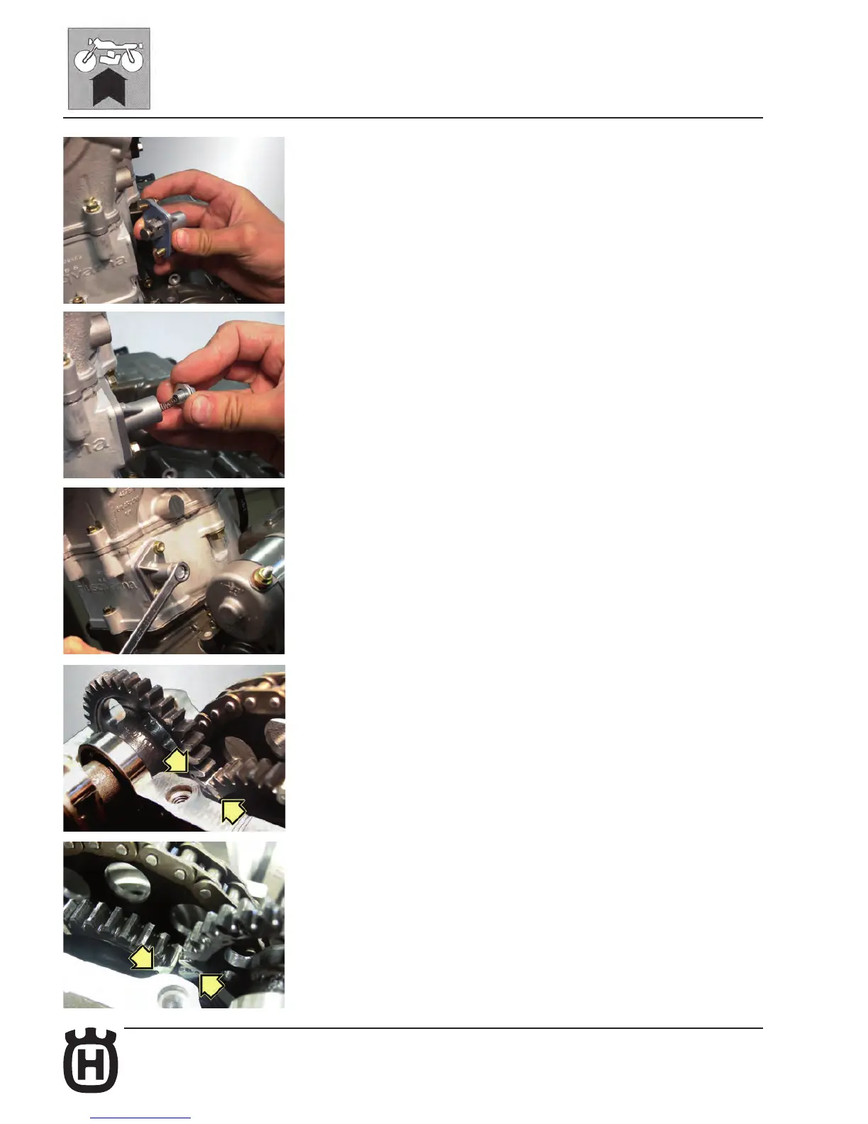 Mount the intake camshaft aligning the reference on the gear with the left refer-