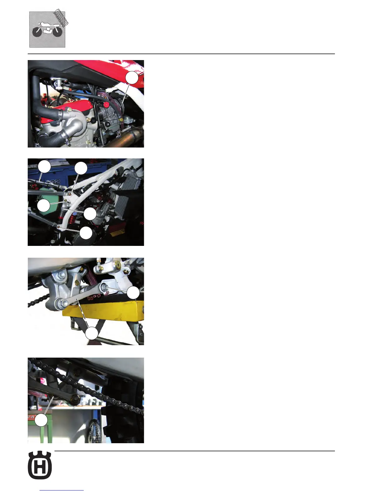frame, the lower fastening screw (6) of the shock absorber, the upper fastening