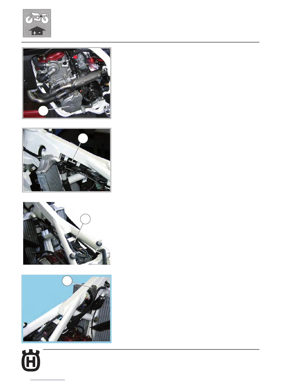 - Electronic power unit C.D.I. (3) under the fuel tank;