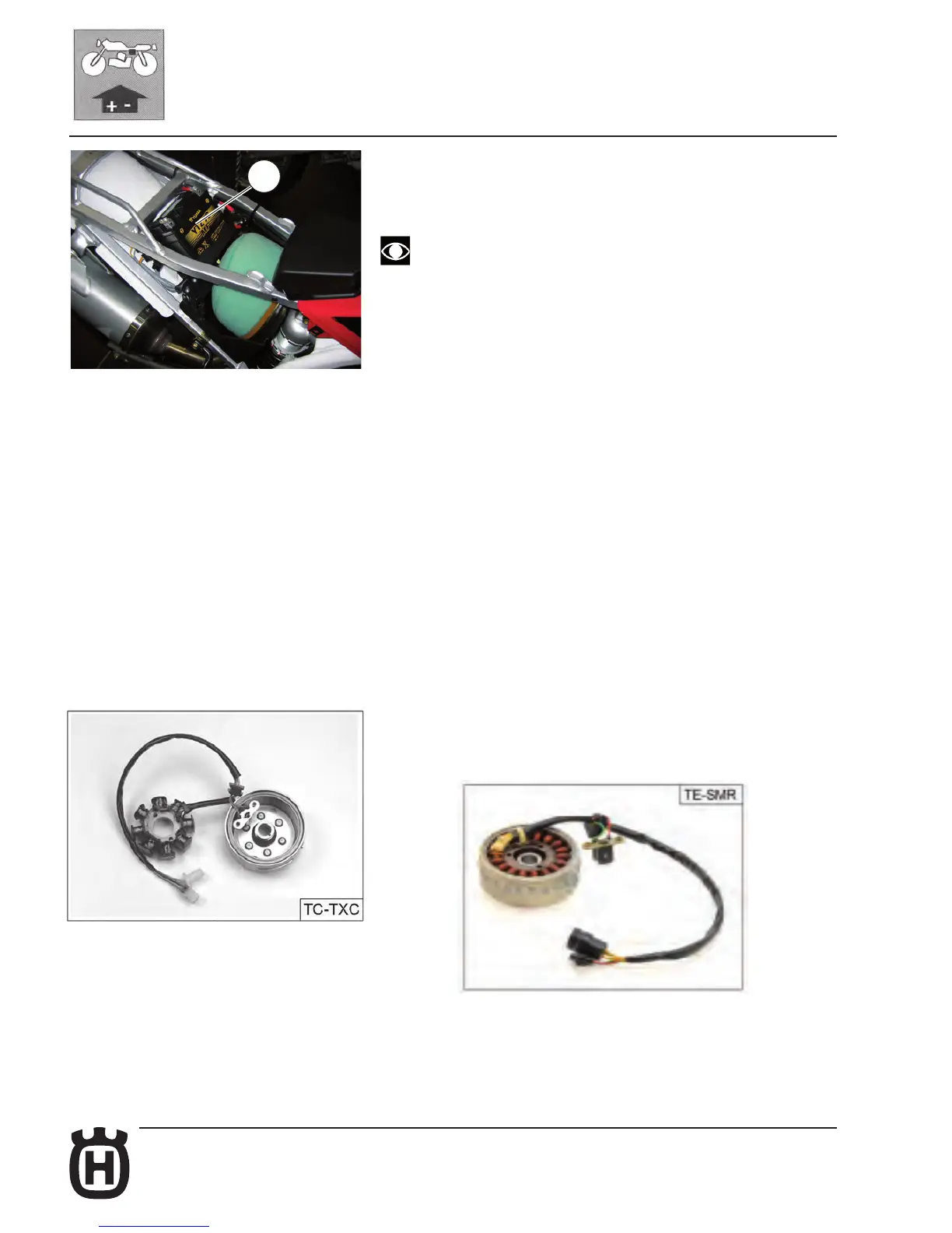 To gain access to the battery (1), remove the saddle (see page E.15).