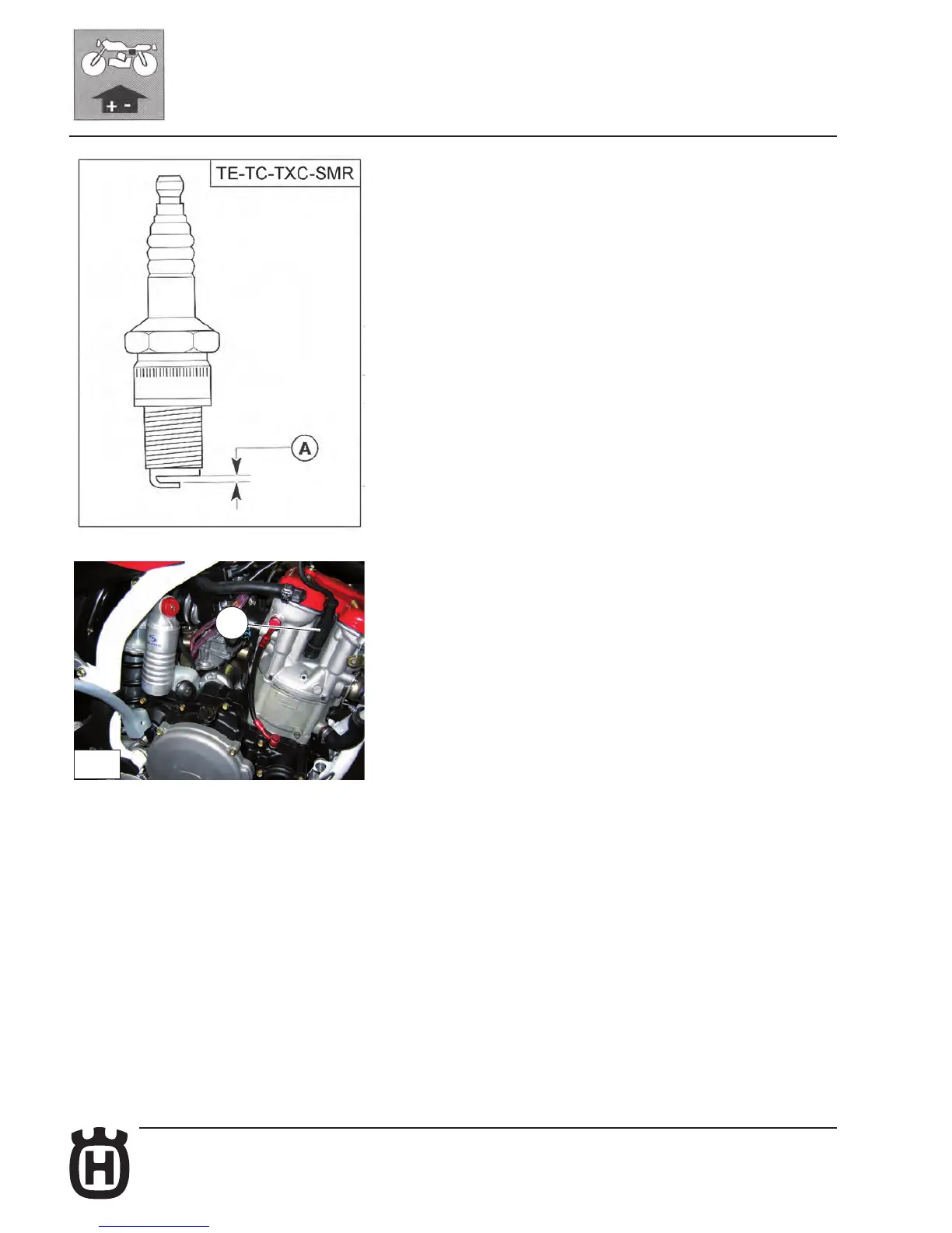 Use "NGK" CR8EB spark plug (1). Check distance "A" (0.7 mm / 0.027 in.)