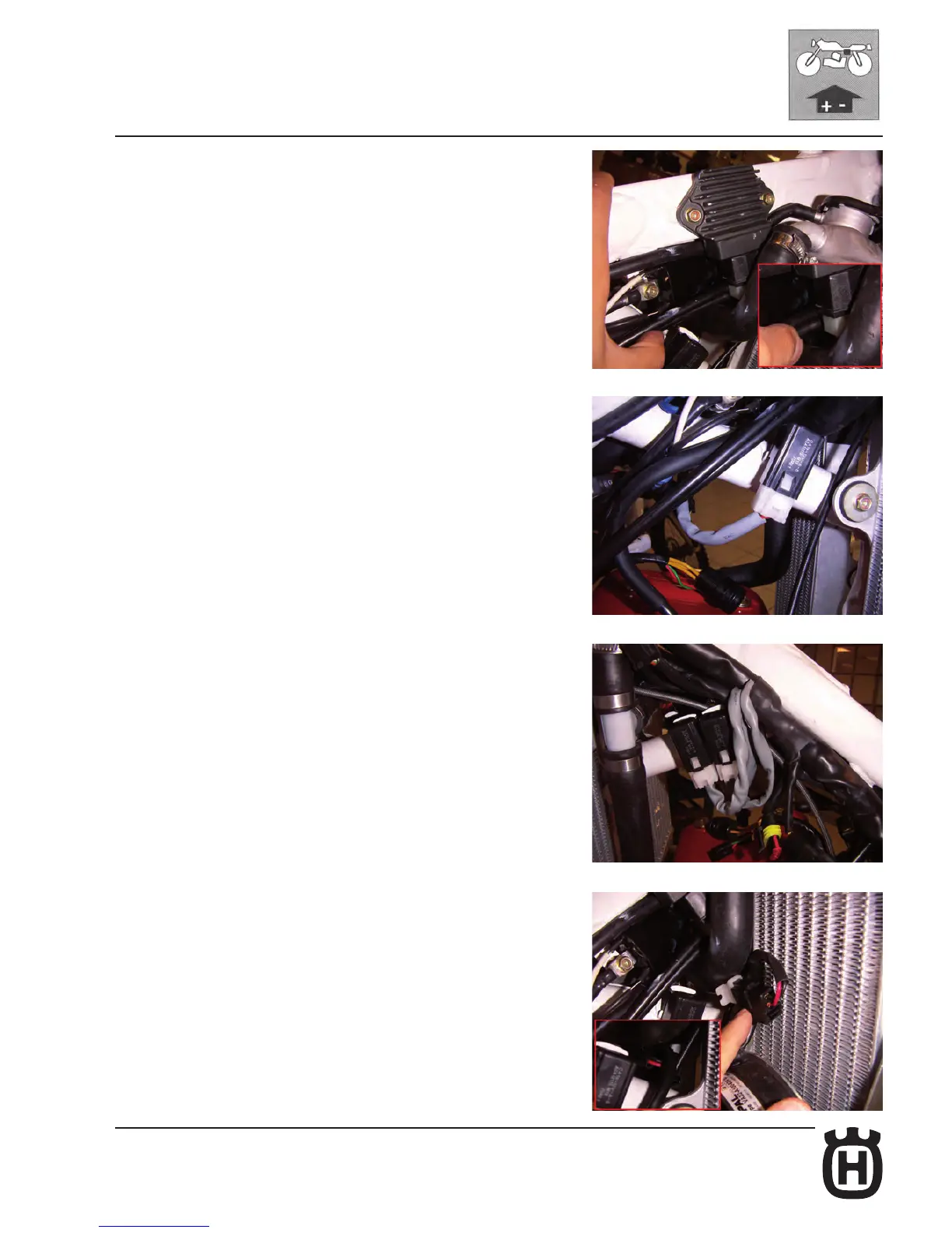 Connect the regulator connector. Be careful with the routes of the radiator