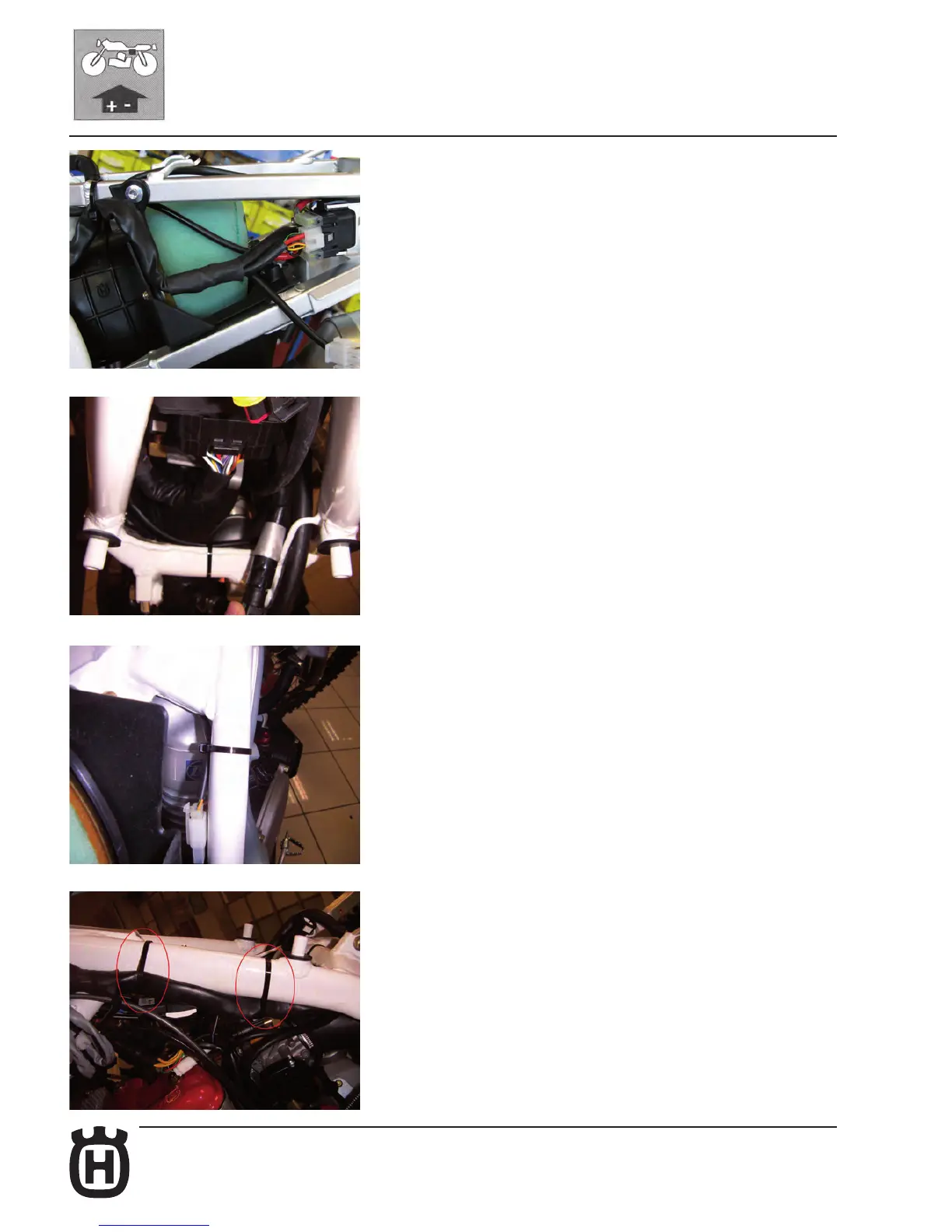 Fasten the wire harness to the frame with two clamps as shown in the picture.