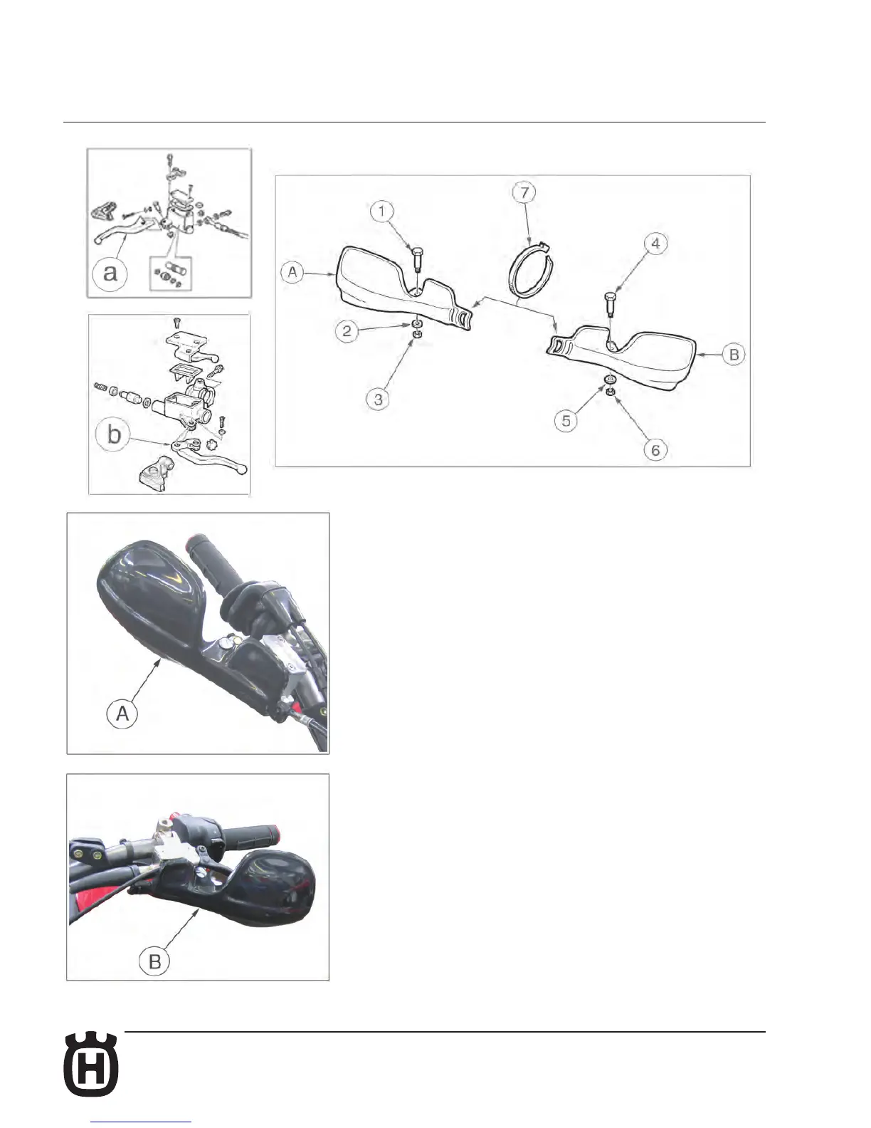 clutch (b) control levers. Place the right hand guard (A) then fasten it with screw