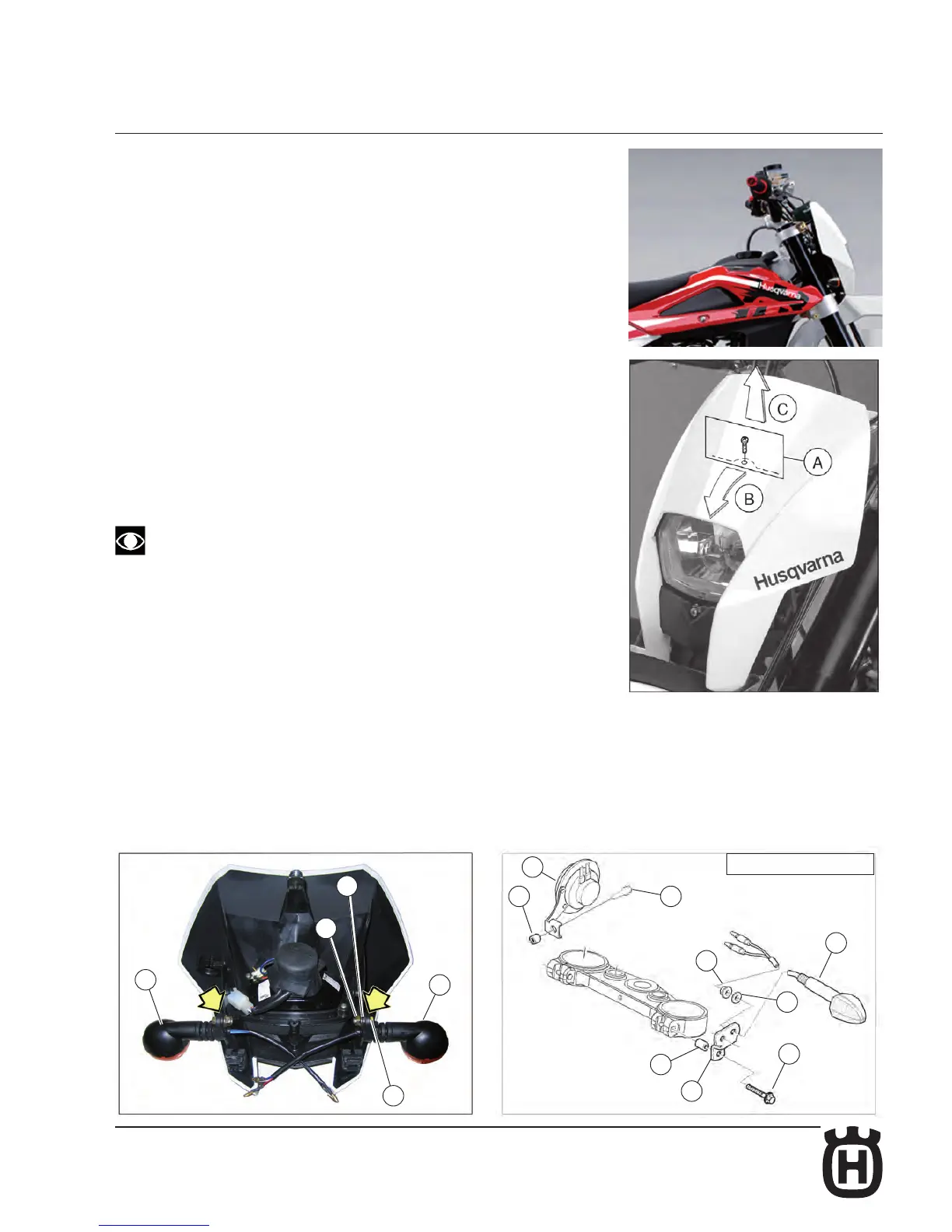 - remove the headlamp carrier and x over it the blinkers using the nuts (3).