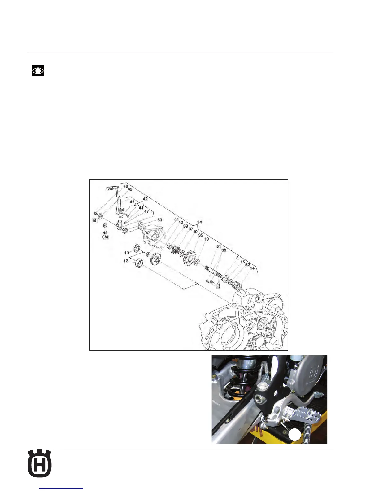 a 6 mm allen wrench, remove the rear brake control pedal bolt.