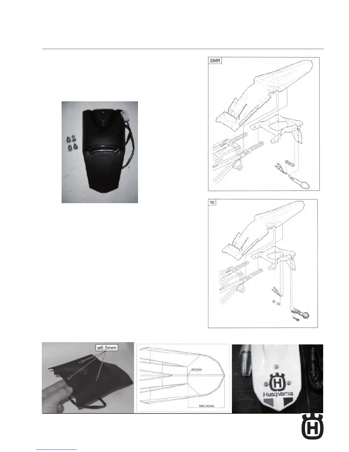 Drill one 6.5 mm hole on the rear mudguard as shown in the picture, then two