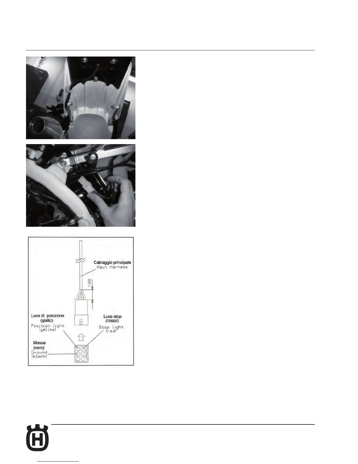 Pass the licence plate holder cables along the rear frame. Connect the rear