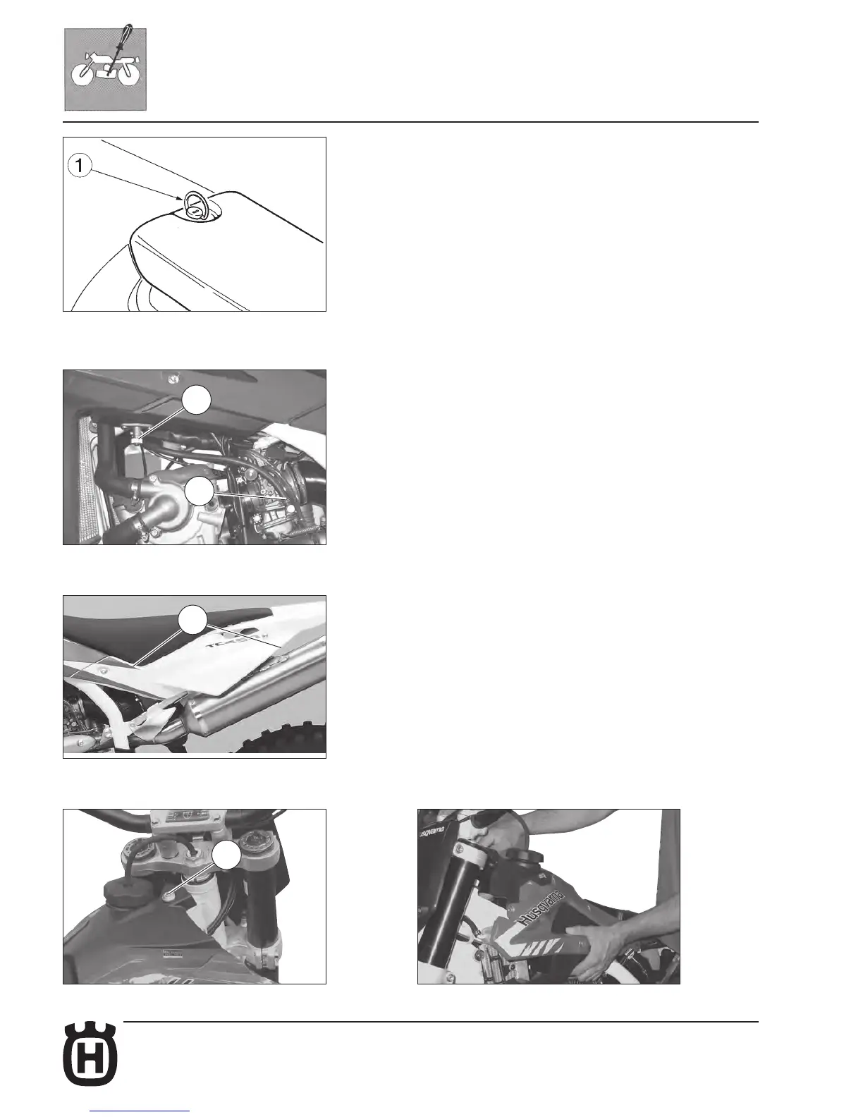 Close the fuel tap (2) and loosen the strap (3) on the connecting pipe to the