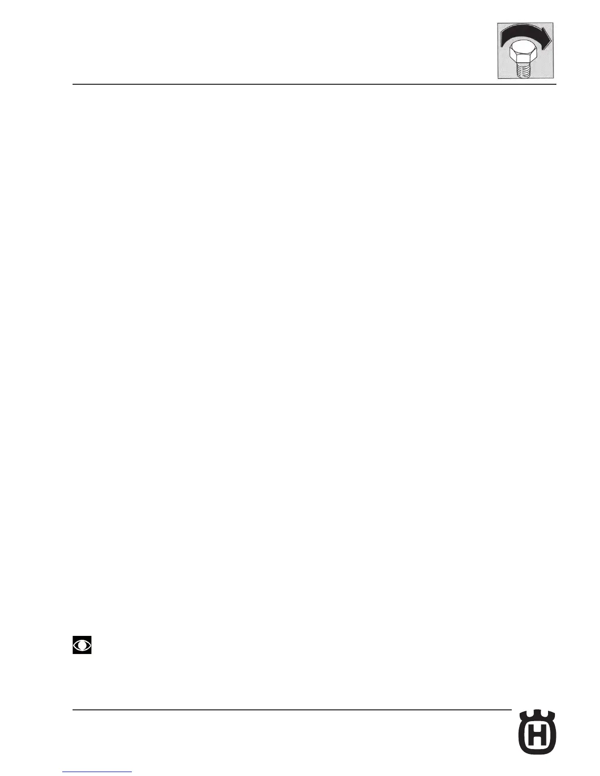Tighten all nuts and bolts with a torque wrench at the correct setting. Insufcient tightening of nuts or bolts can cause them to become damaged or loose leading
