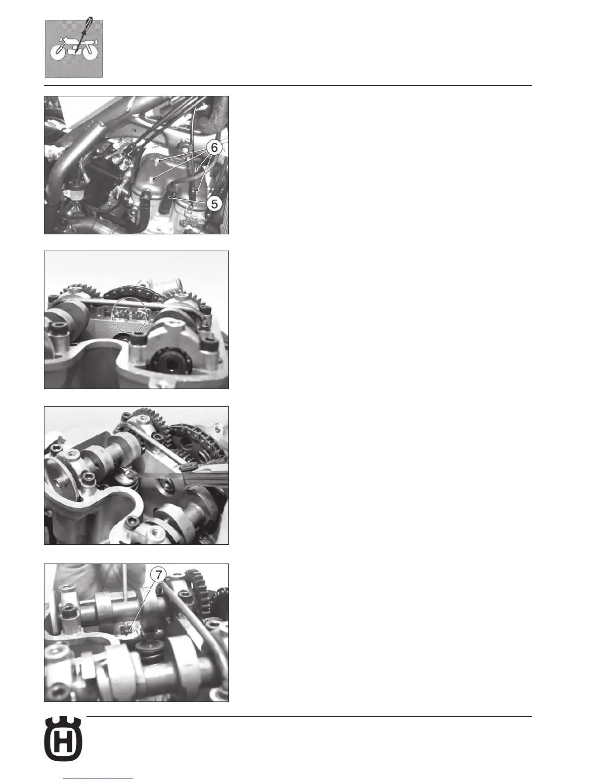 Remove the spark plug (5), the four cylinder head cover fastening screws (6)