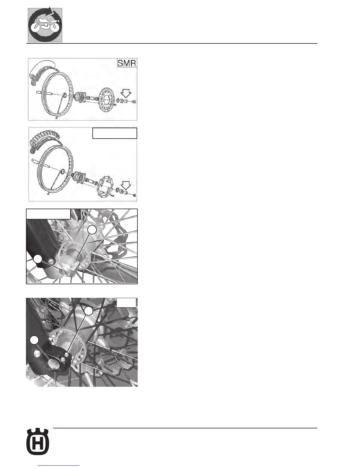 SMR: Fit the wheel between the front fork legs.