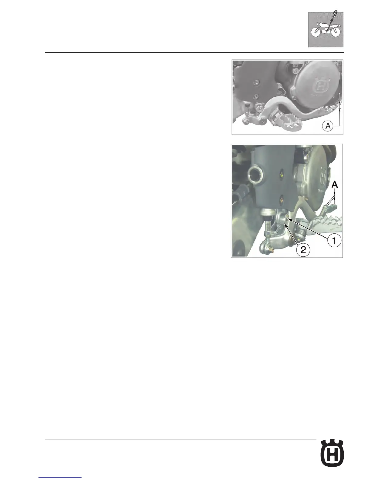 The position of the rear foot brake pedal as to the footrest may be adjusted ac-