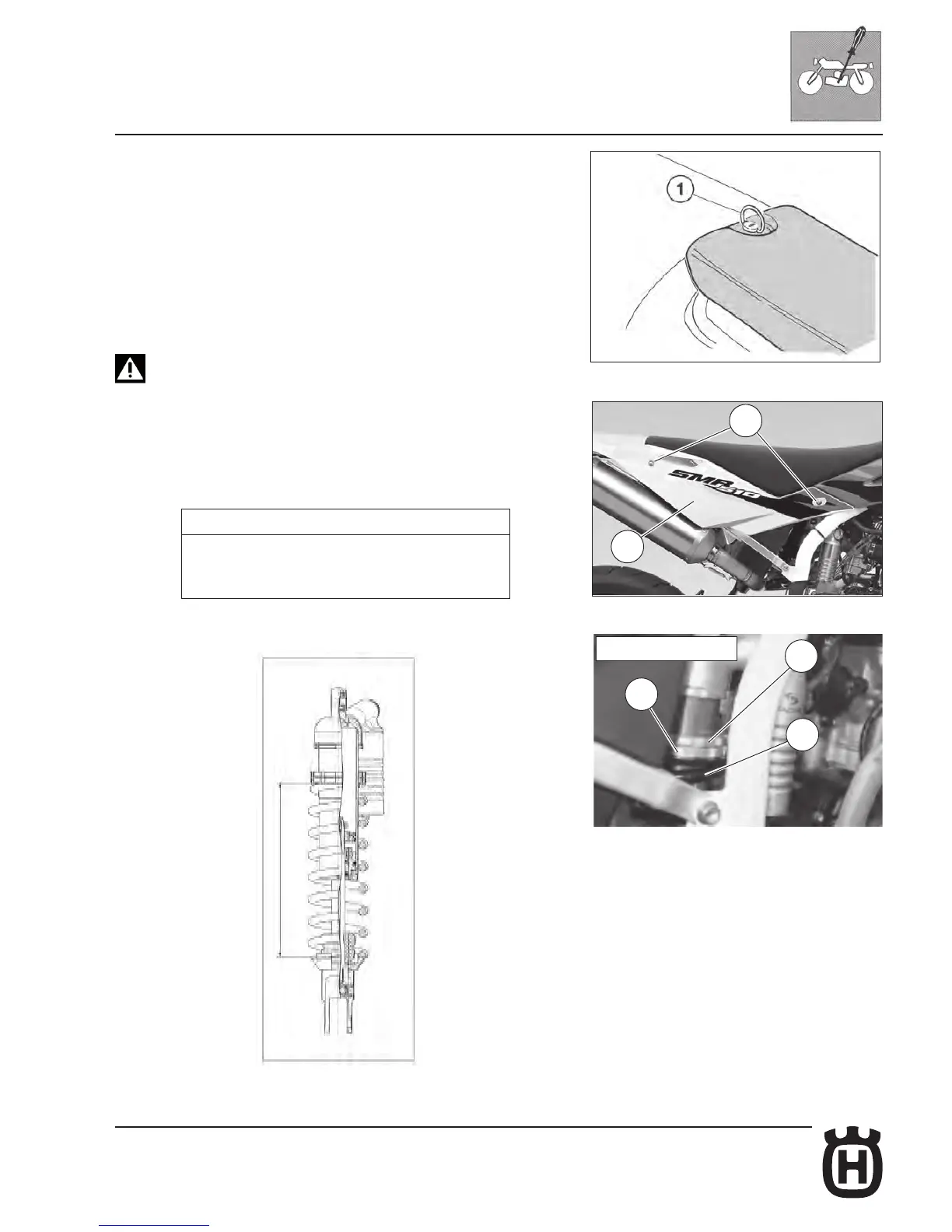 : Be careful not to touch the hot exhaust pipe while adjusting the shock
