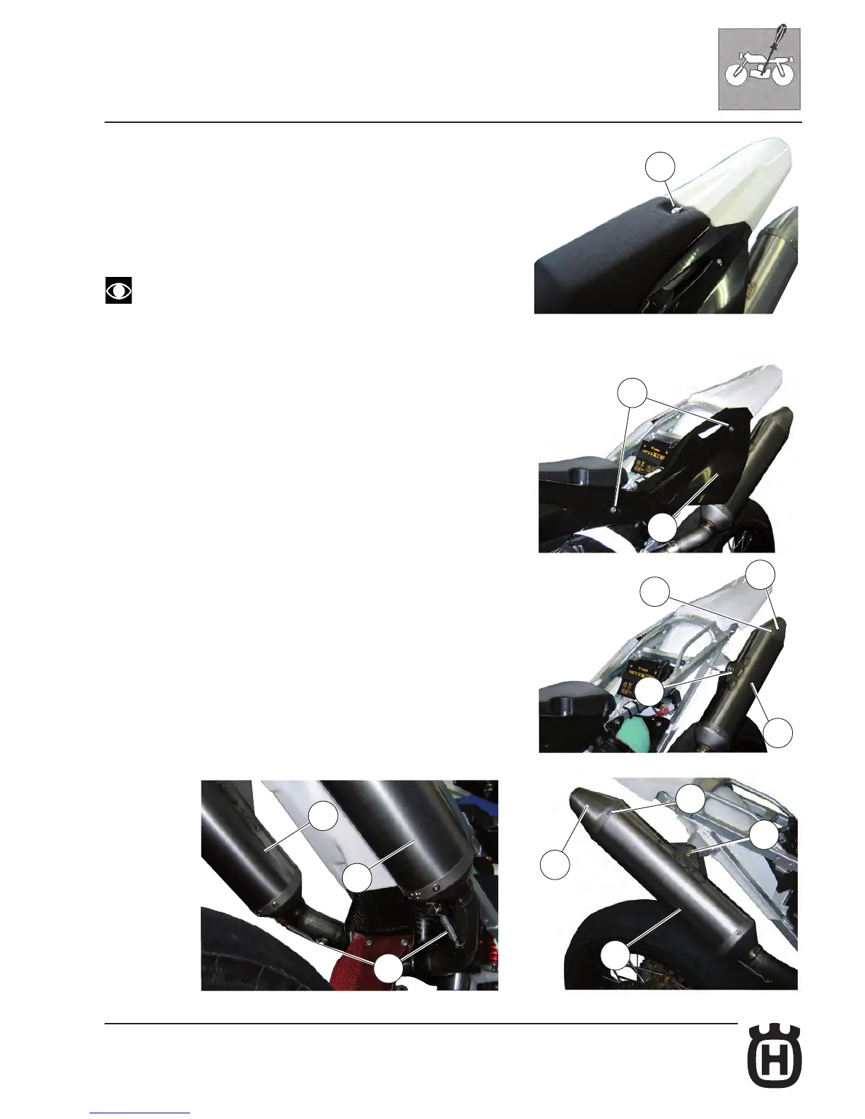 the four rear rivets (6), clamp and the exhaust terminal (7).