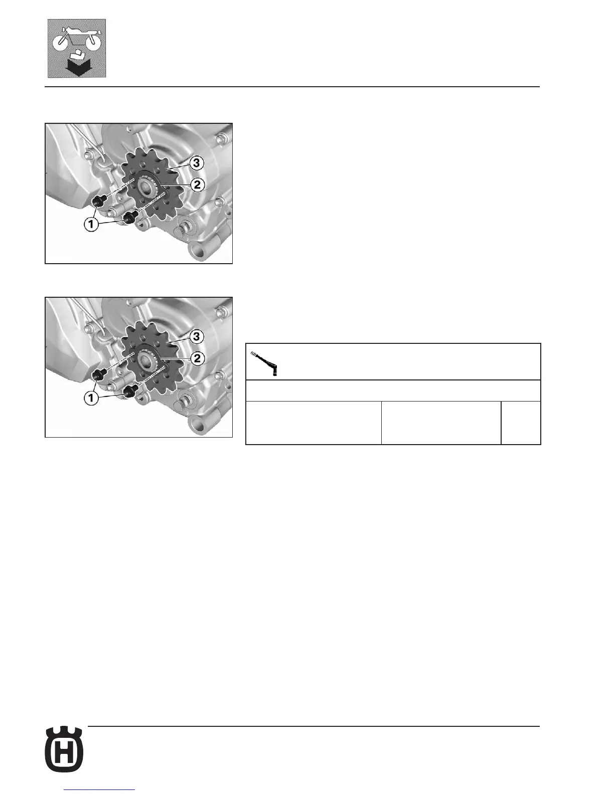 • Remove chain sprocket (3).