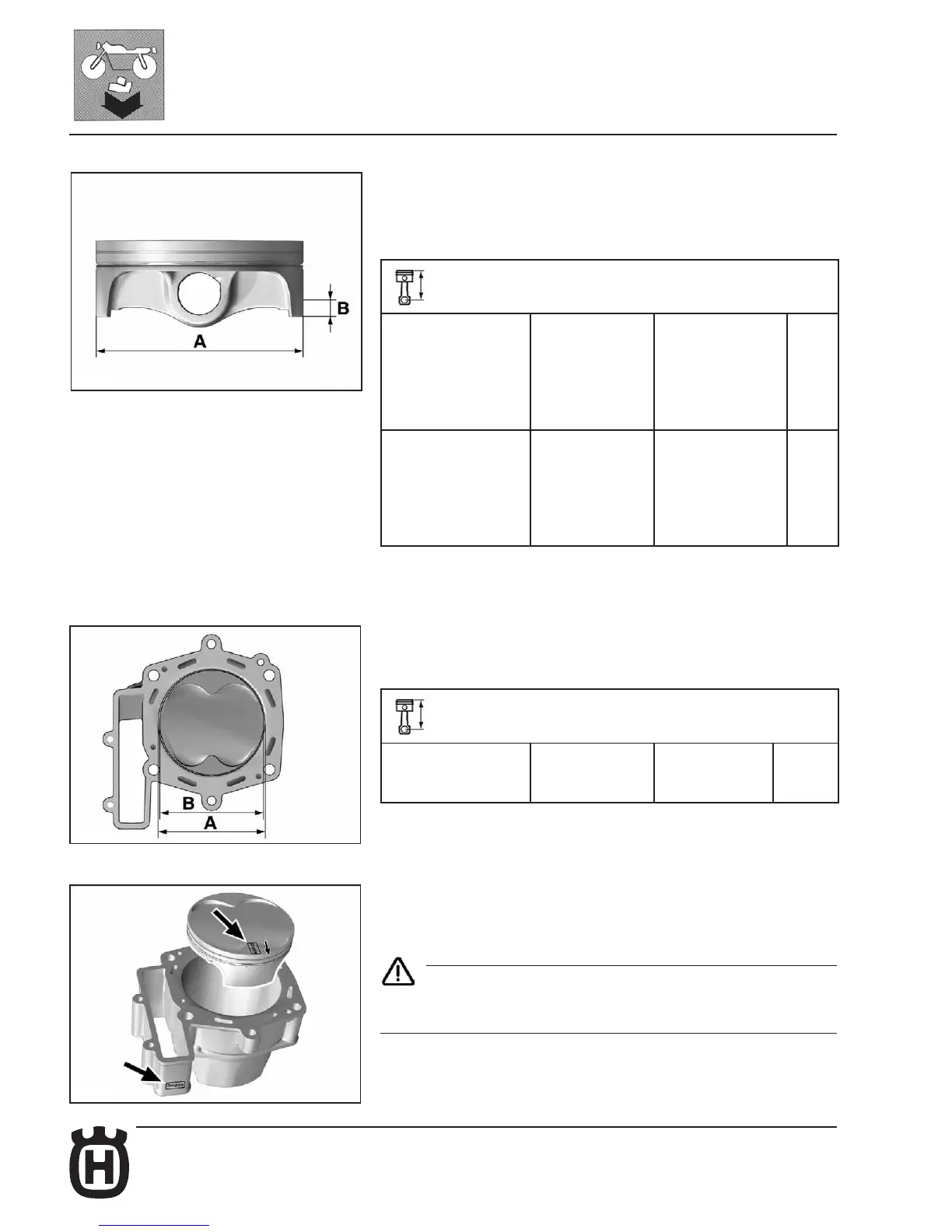 • Measure piston diameter (A) crosswise to piston pin axis.