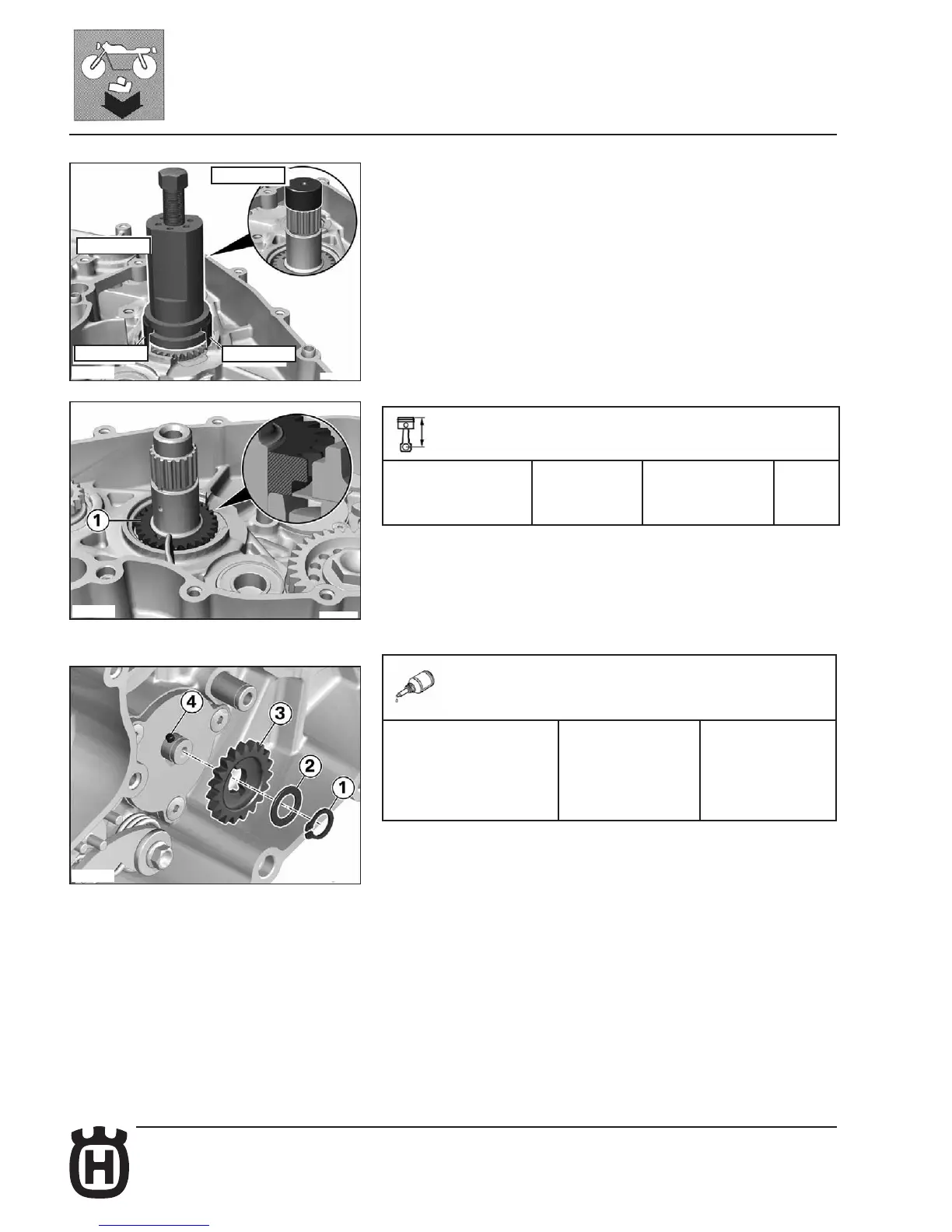 • Fit gear (1) with the dowel protruding towards crankcase.