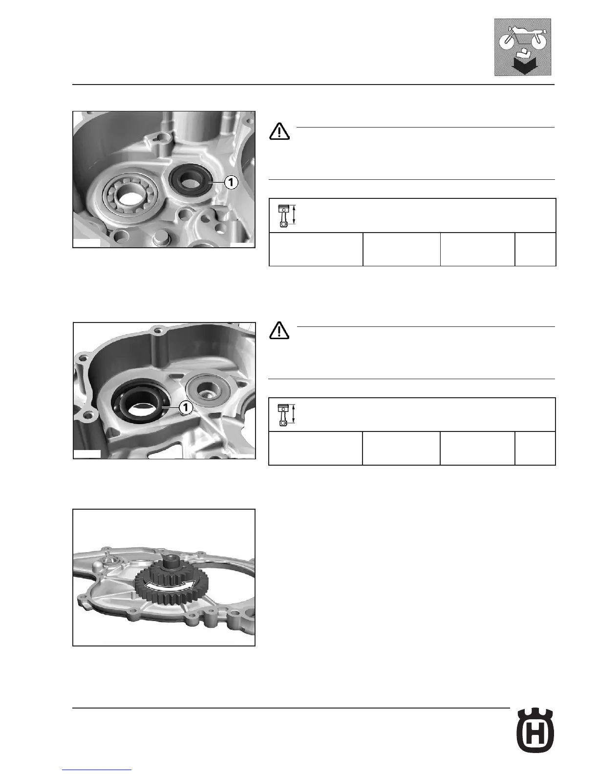 • Fit bearing (1) - open side facing the crankcase - with a suitable tool.