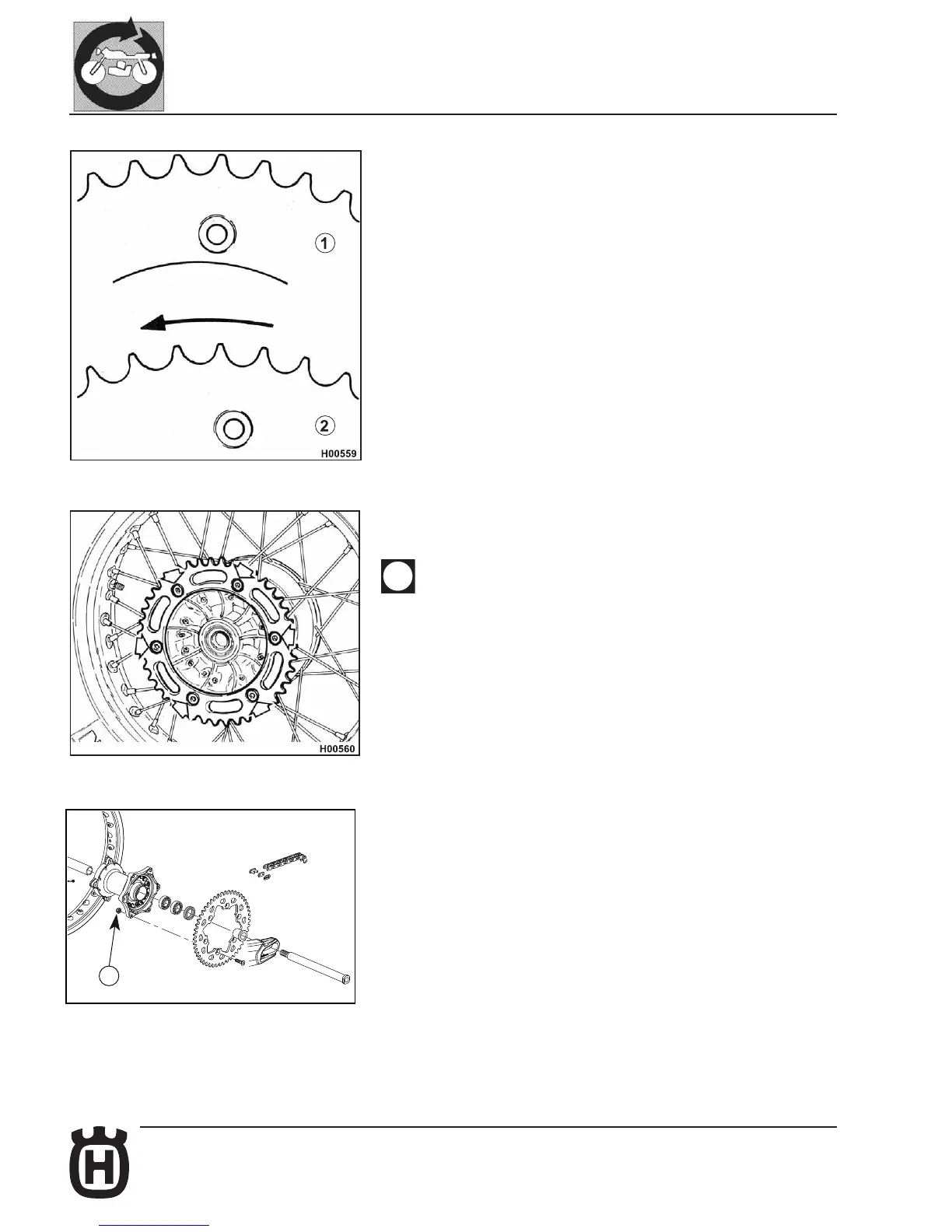 If the sprocket is exceedingly worn, replace it after loosening the six screws that