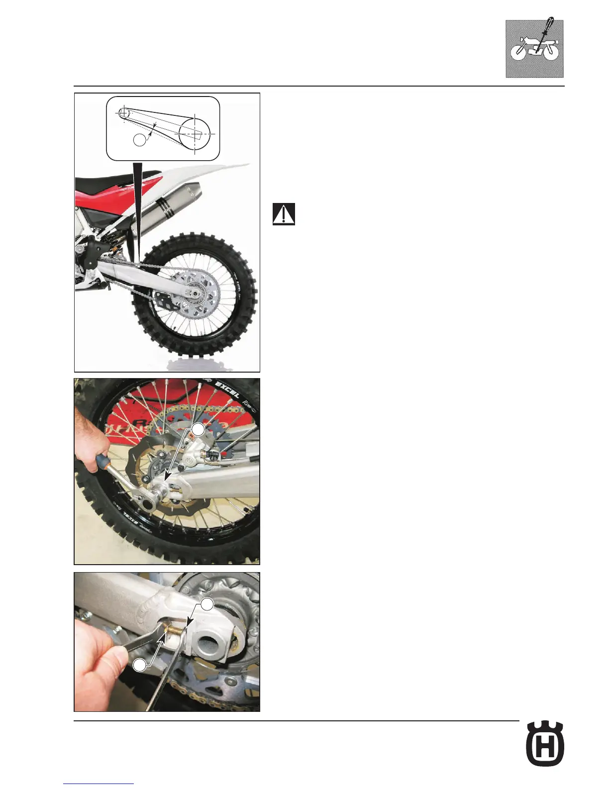 - loosen the check nuts (3) on both chain tensioners, with a 12 mm wrench, and