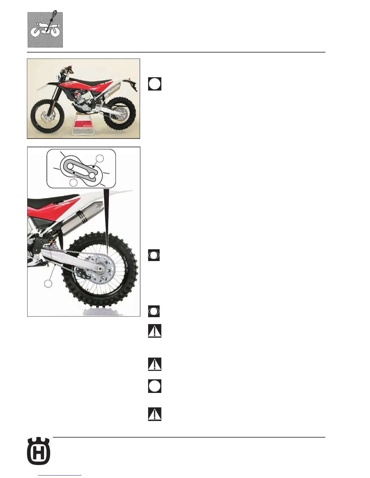The chain lubricant shall NEVER get in contact with the tyres or the rear