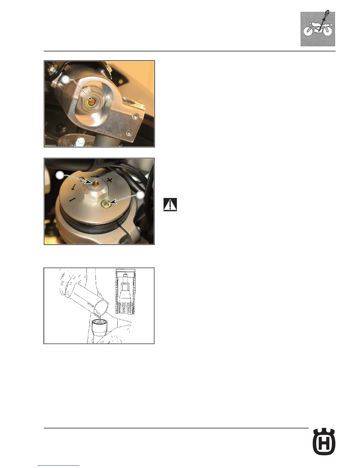 Set the motorcycle on a central stand, release the fork fully extended and loosen