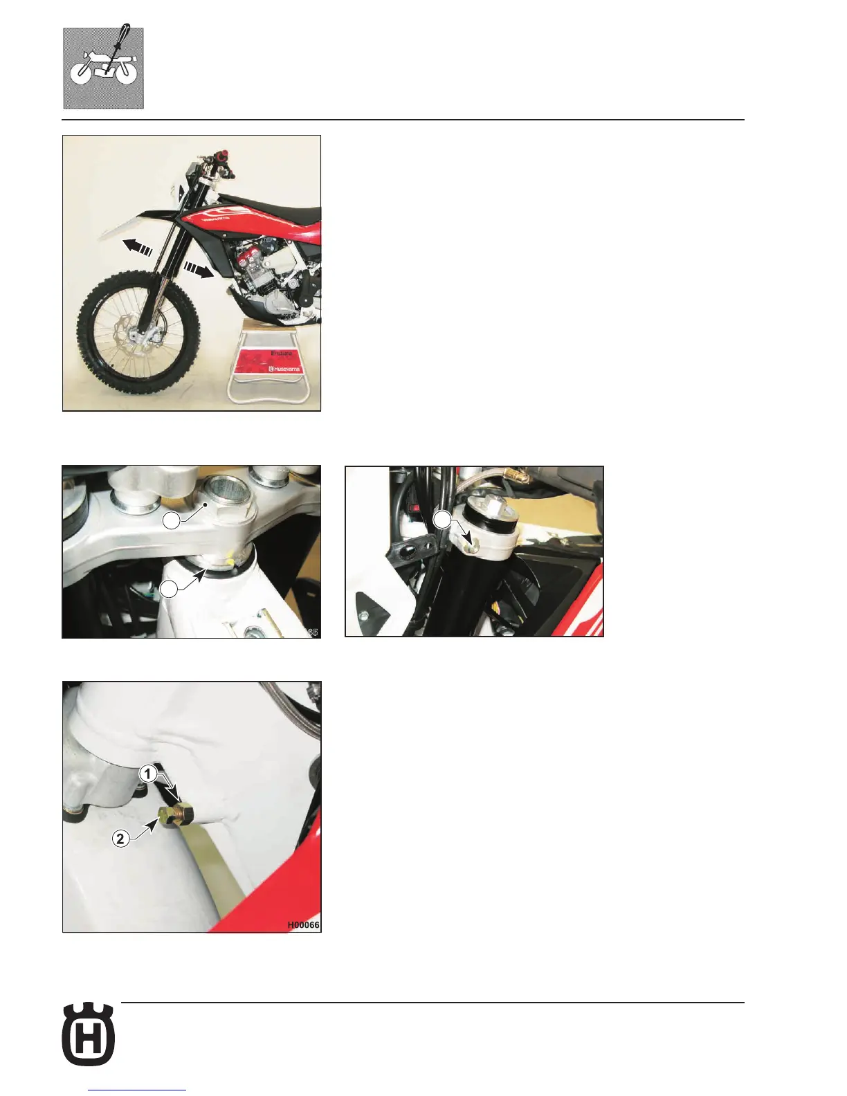 - Tighten the four bolts (3) on the steering head to 22.5-26.5 Nm (2.3-2.7 Kgm).