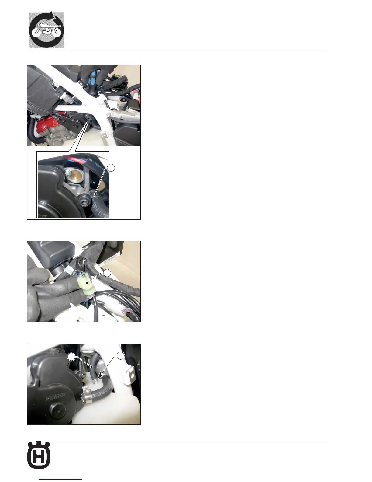 - Undo the upper clamp (3) connecting fuel pump to throttle body.