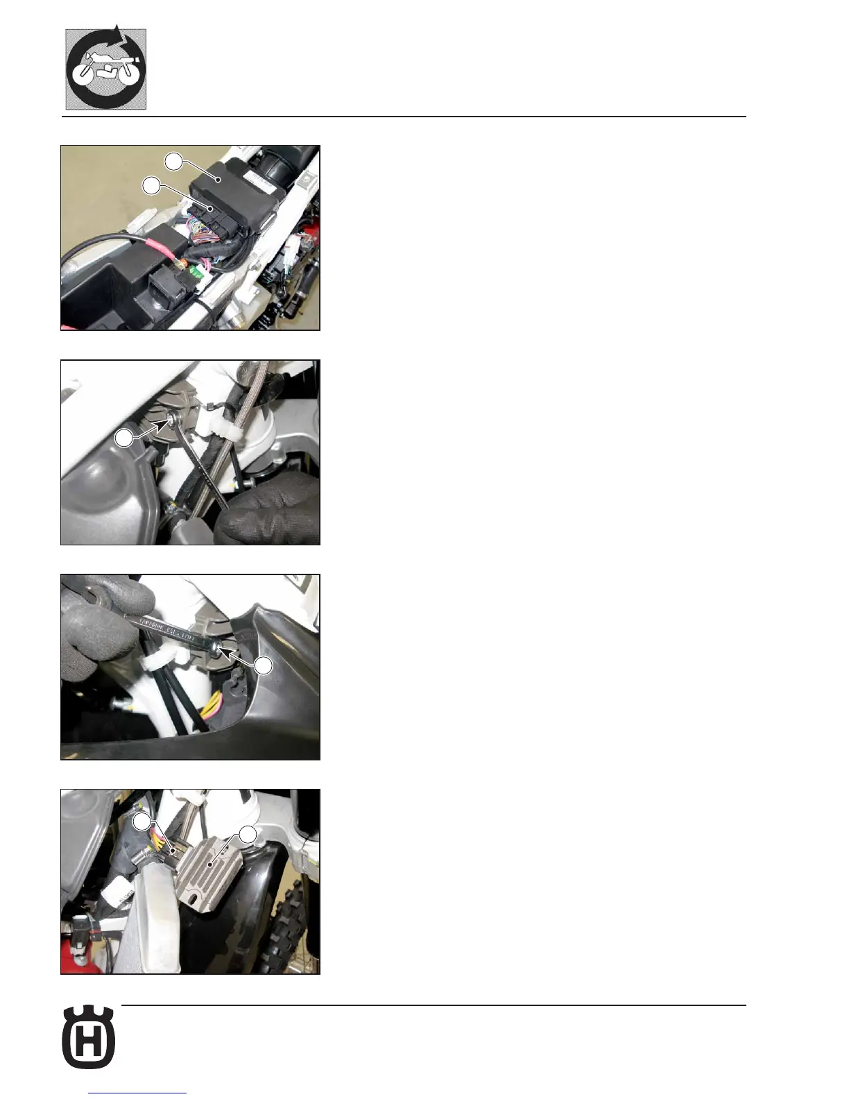- Disconnect the connector (2), and remove voltage regulator (3).
