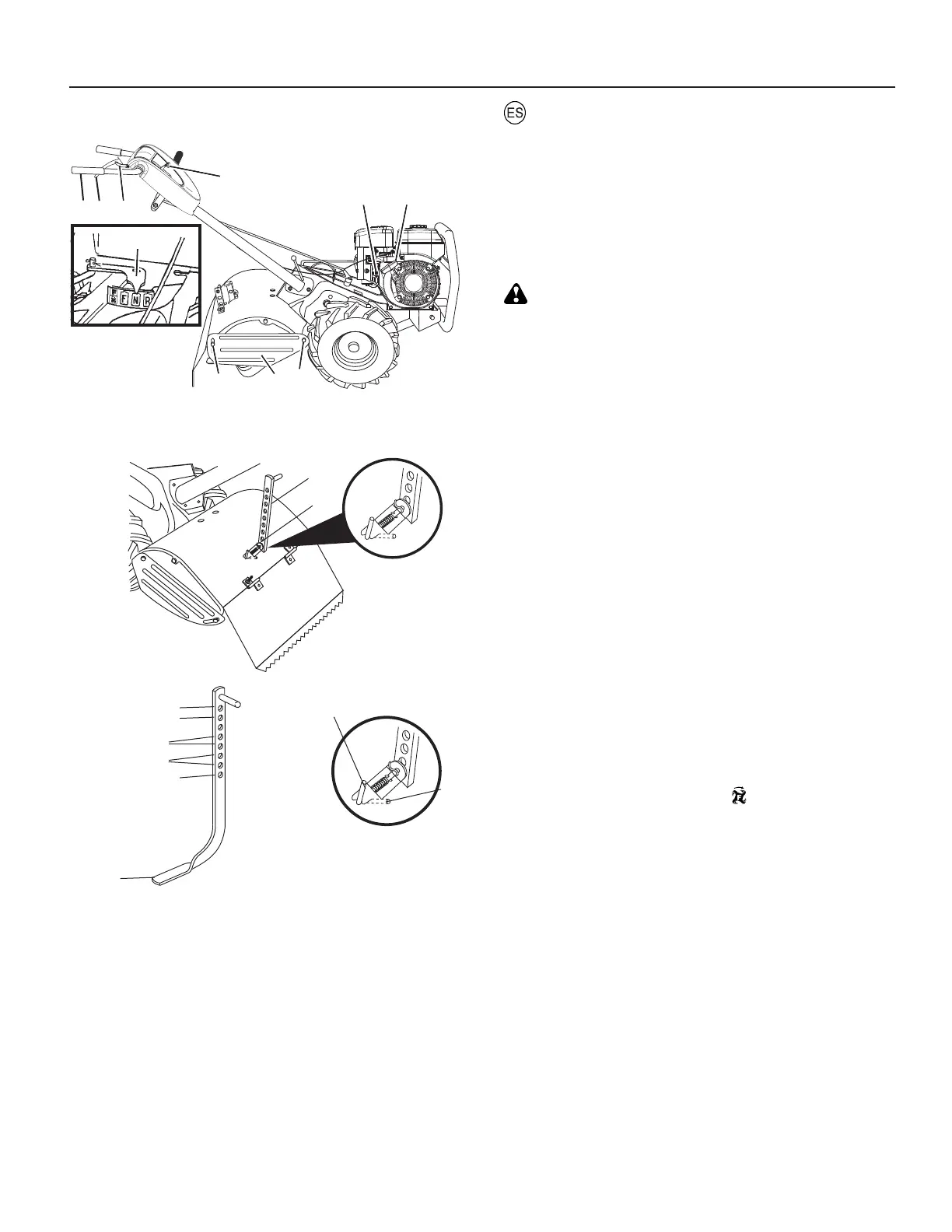 d. No se ponga directamente detrás de la cultivadora.