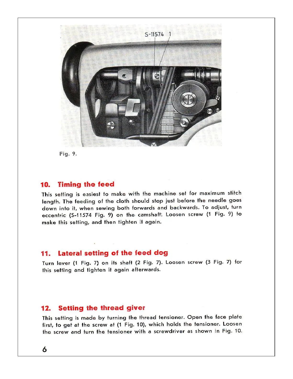Husqvarna Viking Automatic 21 - Timing the feed; Lateral setting of the feed dog; Setting the thread giver