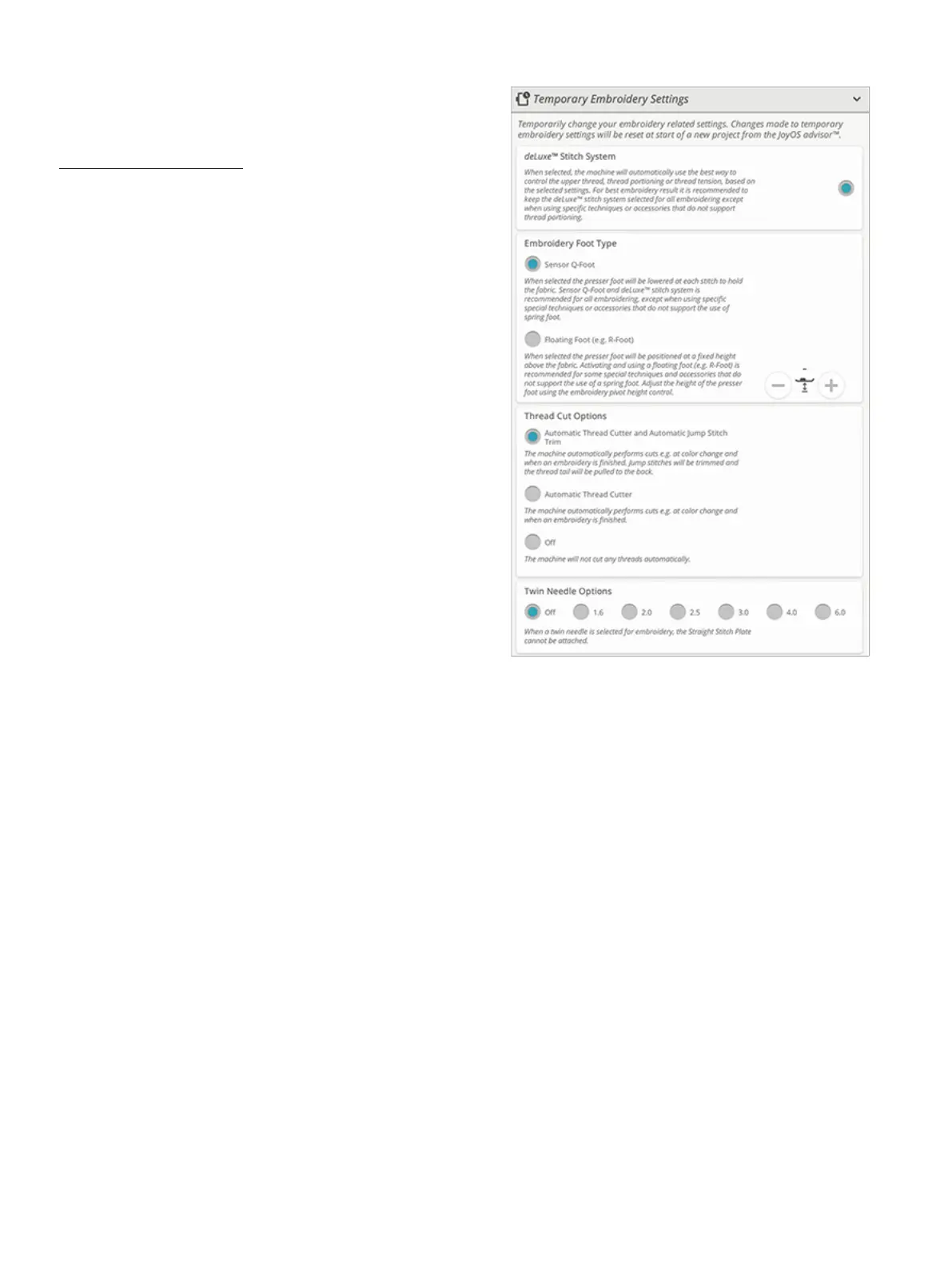like to change an embroidery related setting for your current