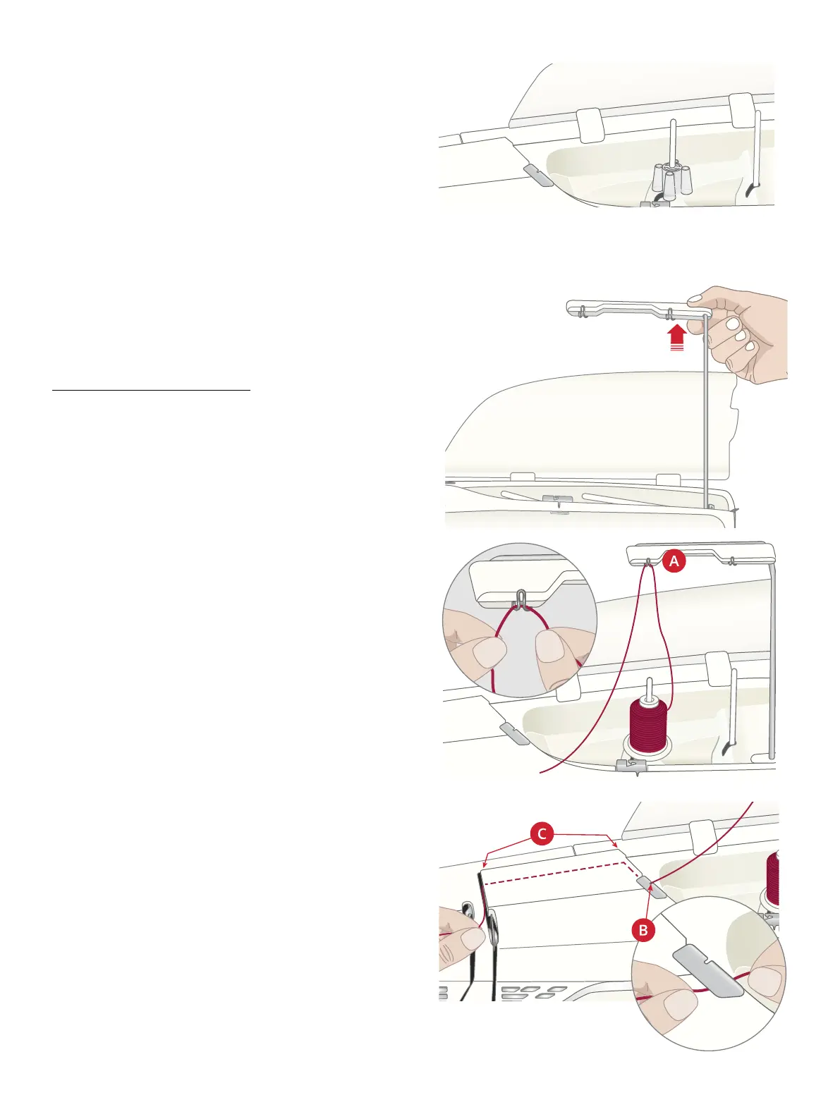 Pull thread back into and through threading slot (C).