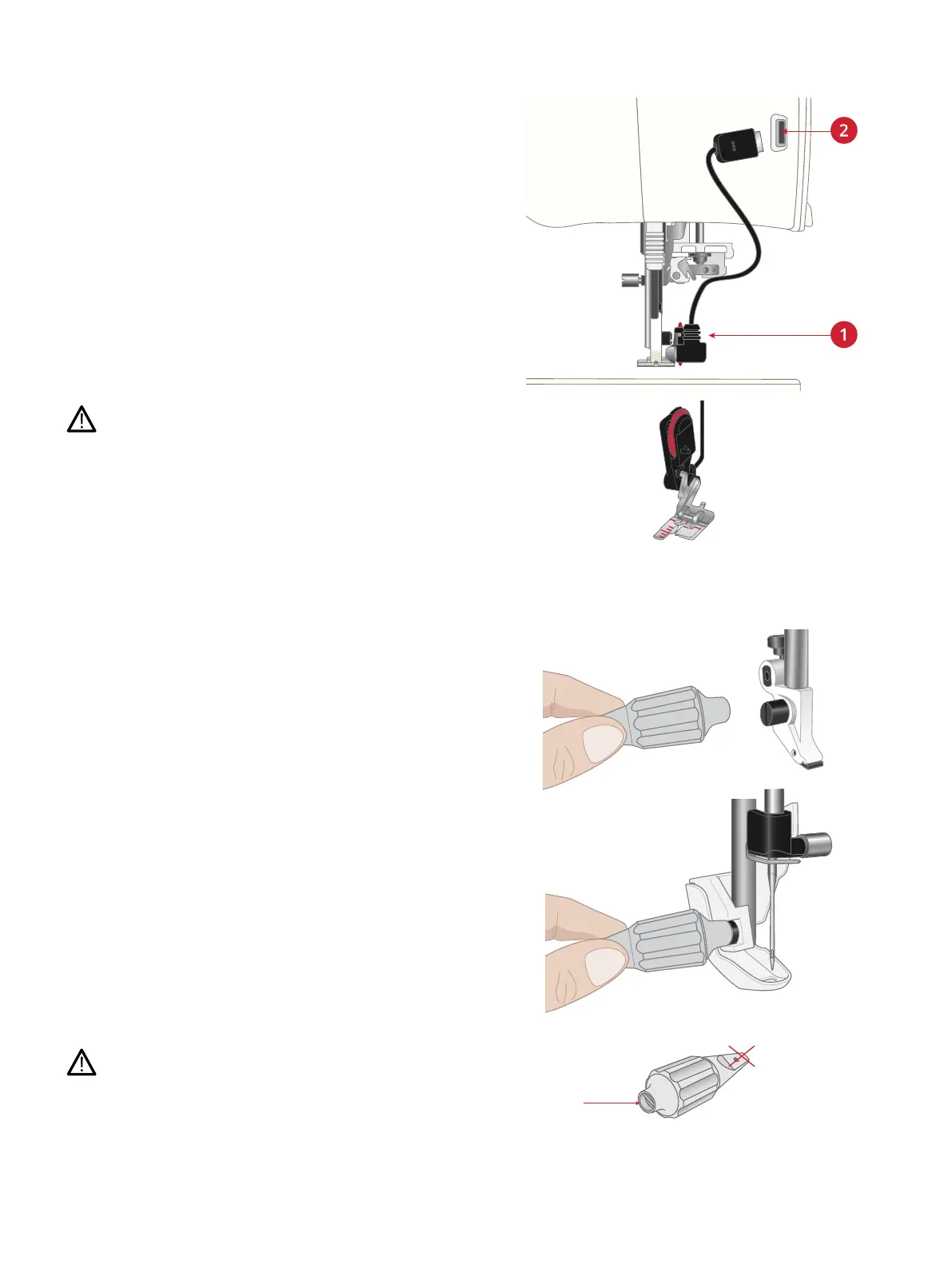 accessory socket at the back of the sewing head.