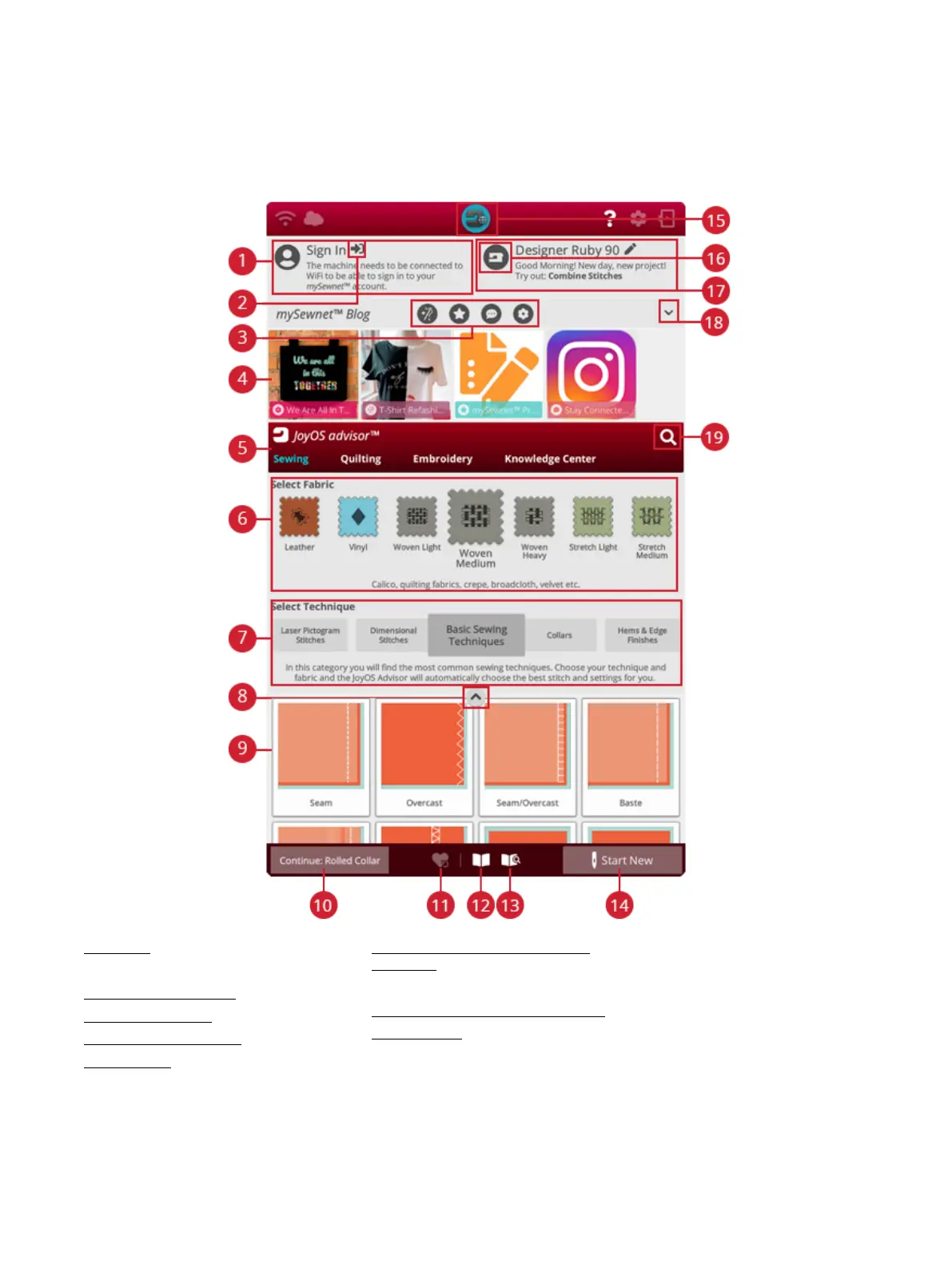 includes a sewing, quilting and embroidery advisor that will