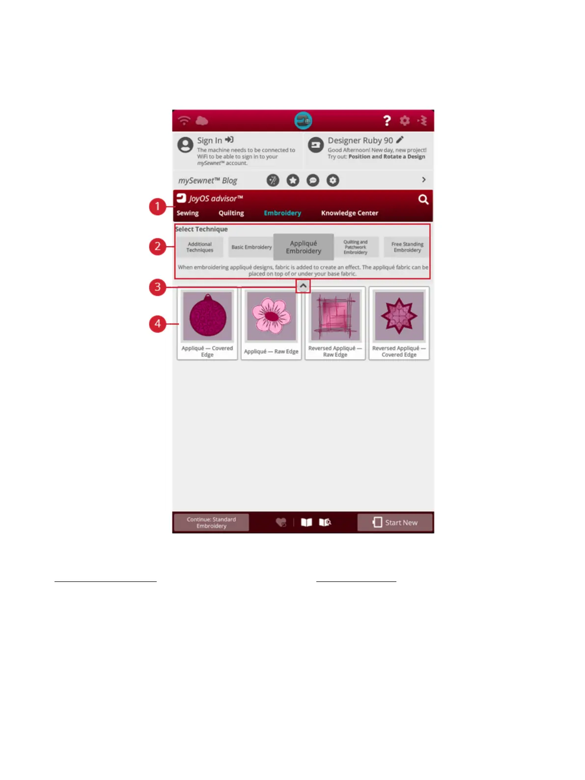 The EMBROIDERY ADVISOR™ gives you guidance for