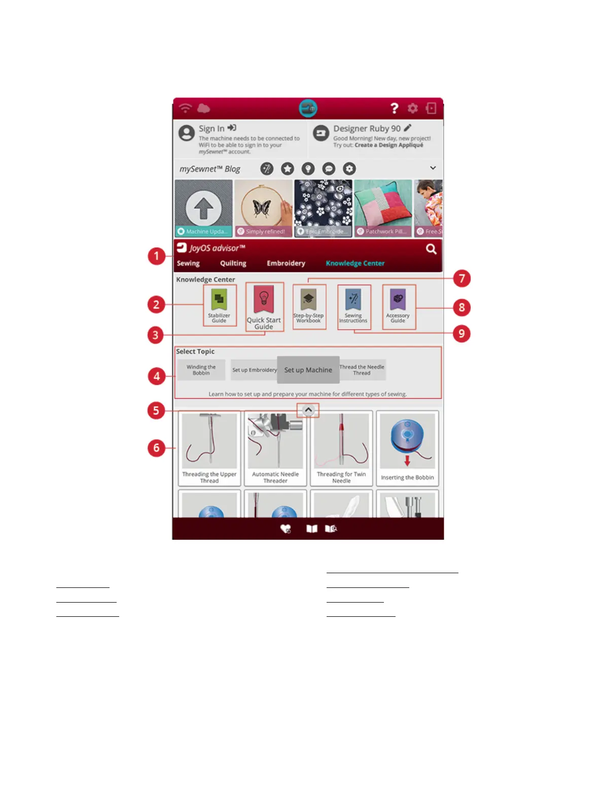 center including: stabilizer guide, quick start guide, sewing