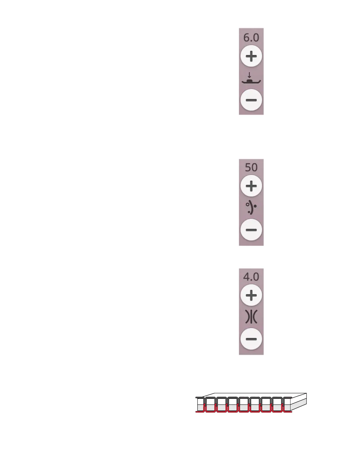 Note: When changing the value of the thread portioning/thread tension