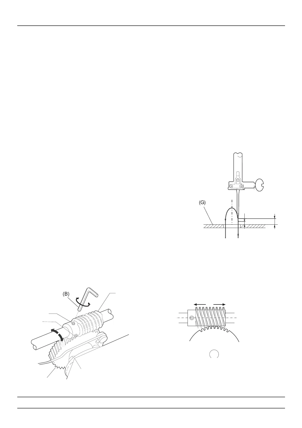 Rotate the cogwheel (C) back and forth and check the play. It should be zero or as small as possible.