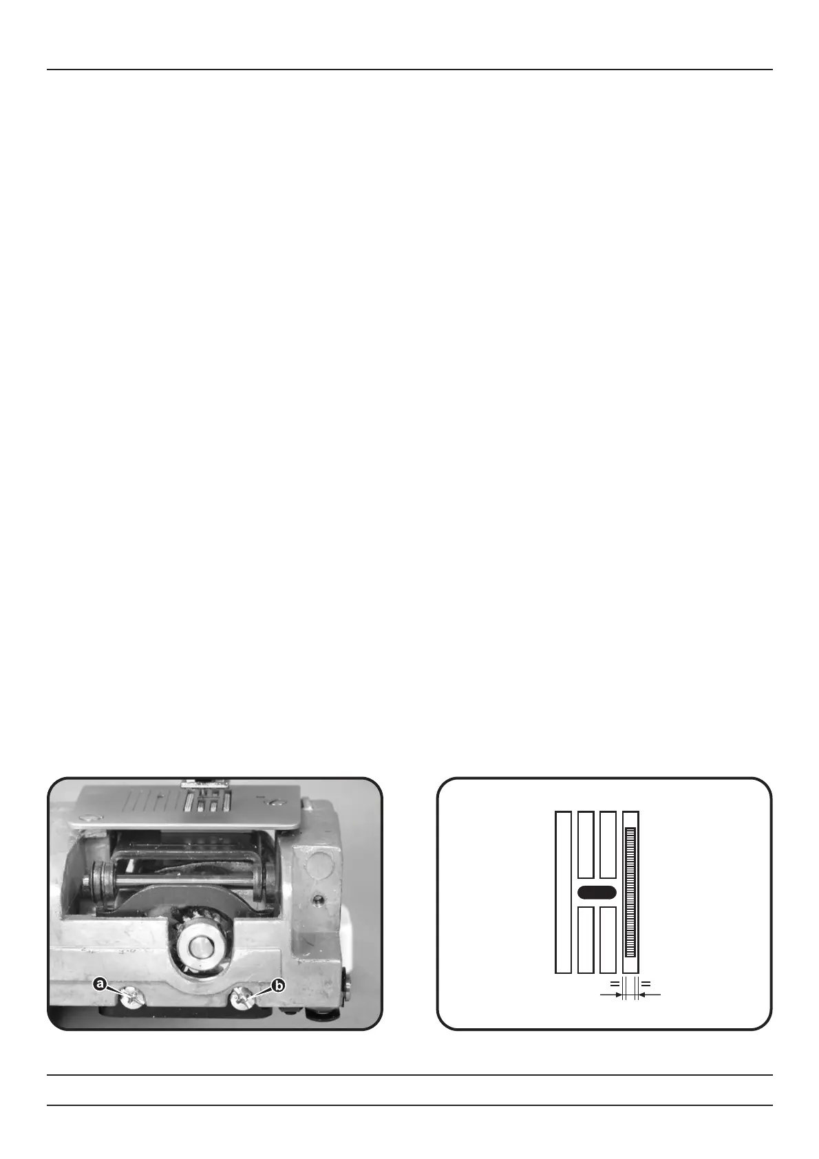 2. Loosen screw (a, b). Move feed dog left / right to middle position.