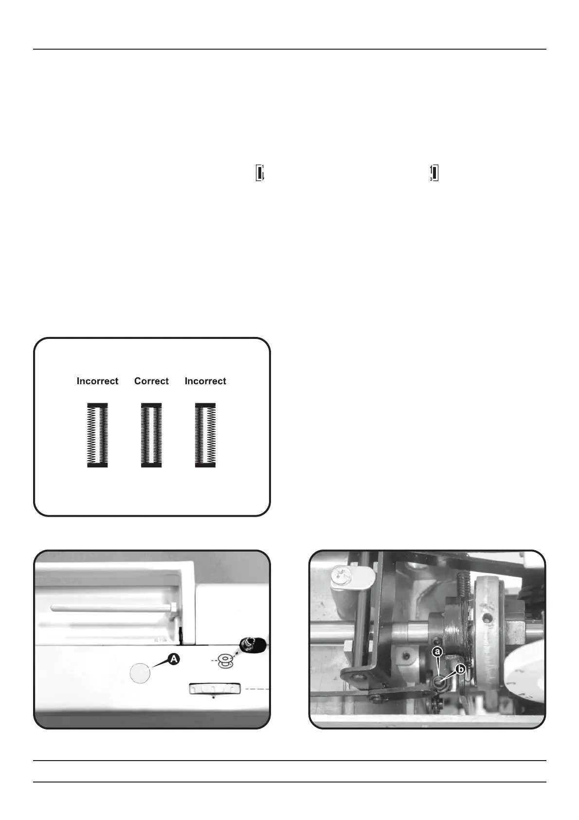 If the left row is denser (B), turn the adjusting screw (a) clock-wise.