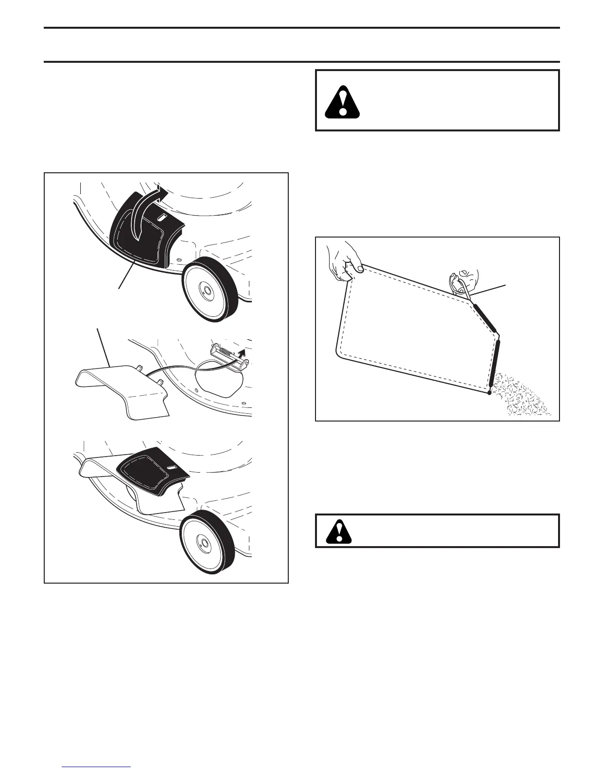 • To convert to mulching or bagging operation, dis charge
