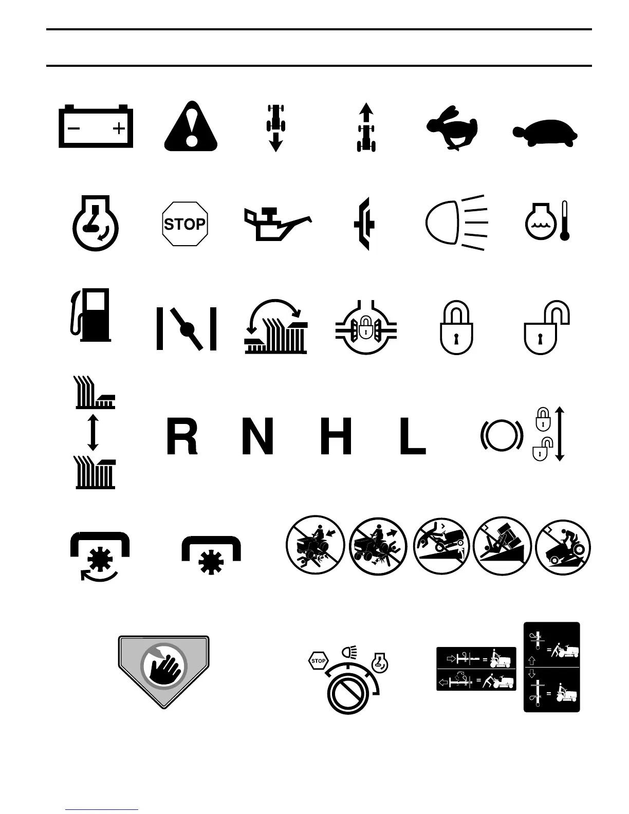 These symbols may appear on your tractor or in literature supplied with the product. Learn and understand their meaning.