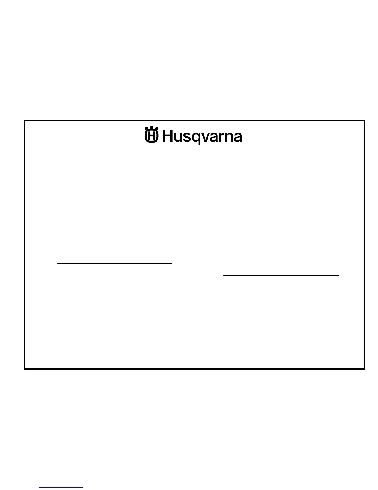 filled out and mailed to Husqvarna Forest & Garden Company. This card should be mailed within ten (10) days