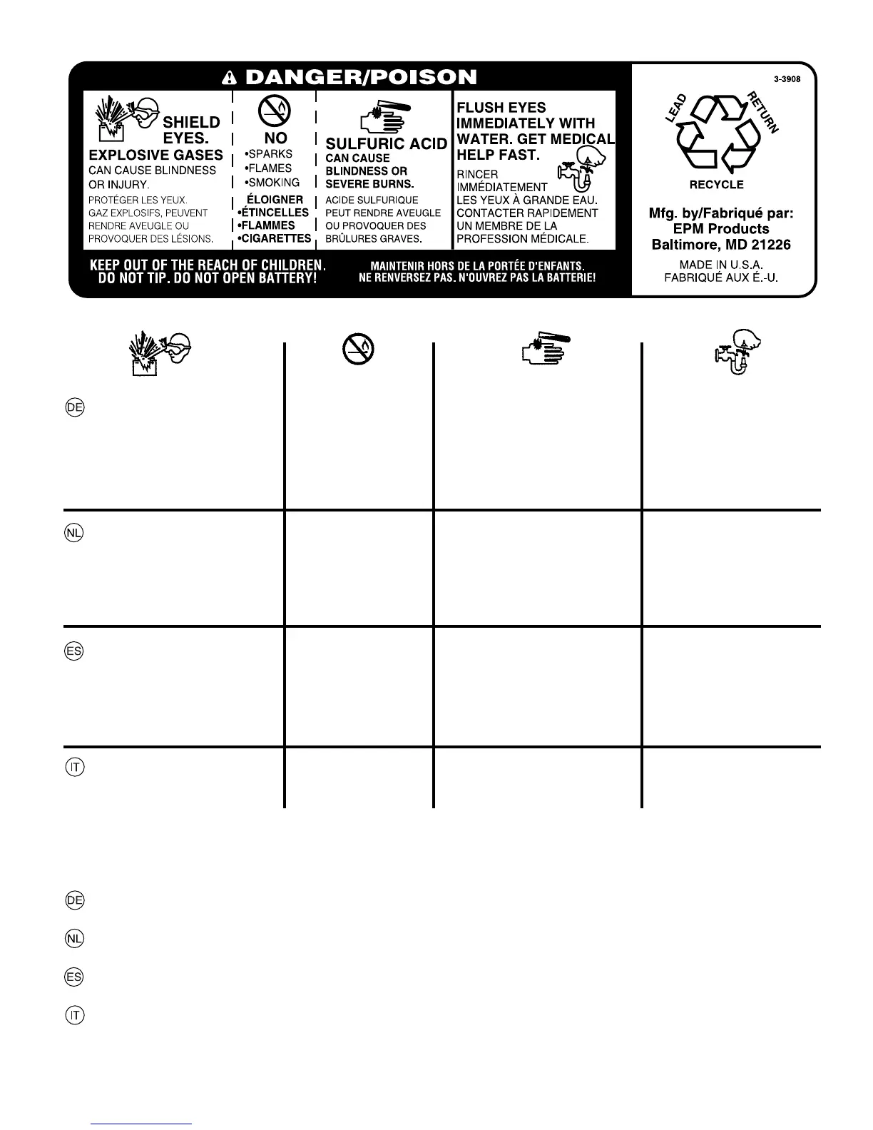 TENERE LONTANO DALLA PORTATA DEI BAMBINI. NON INCLINARE. NON APRIRE LA BATTERIA!
