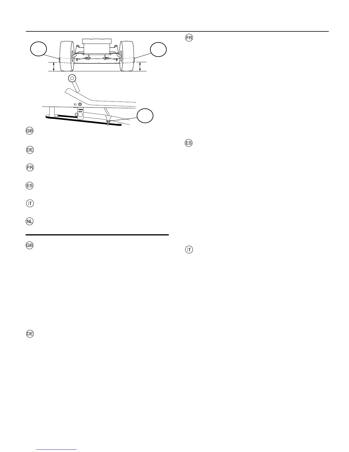 • Auf beiden Seiten des Mähwerks in der Mitte den Abstand
