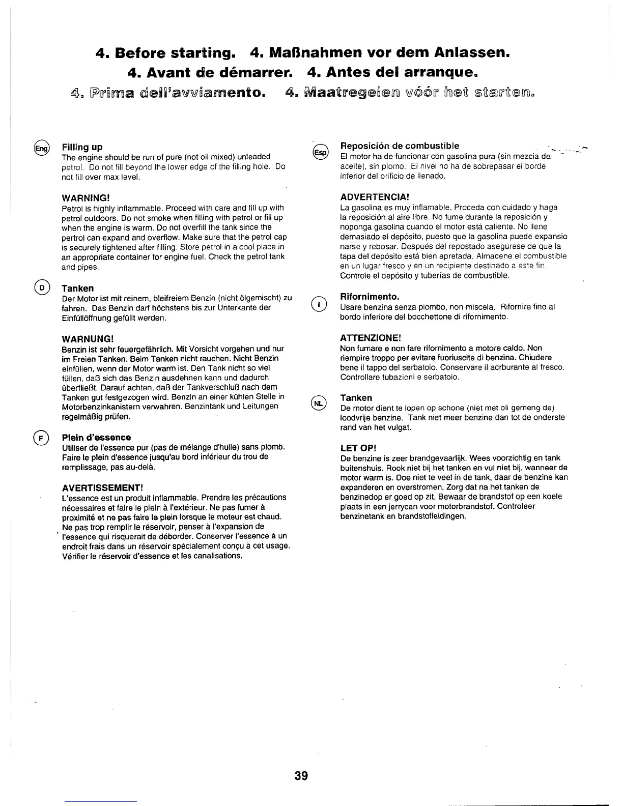 Husqvarna YTH160 - Before Starting; Filling up