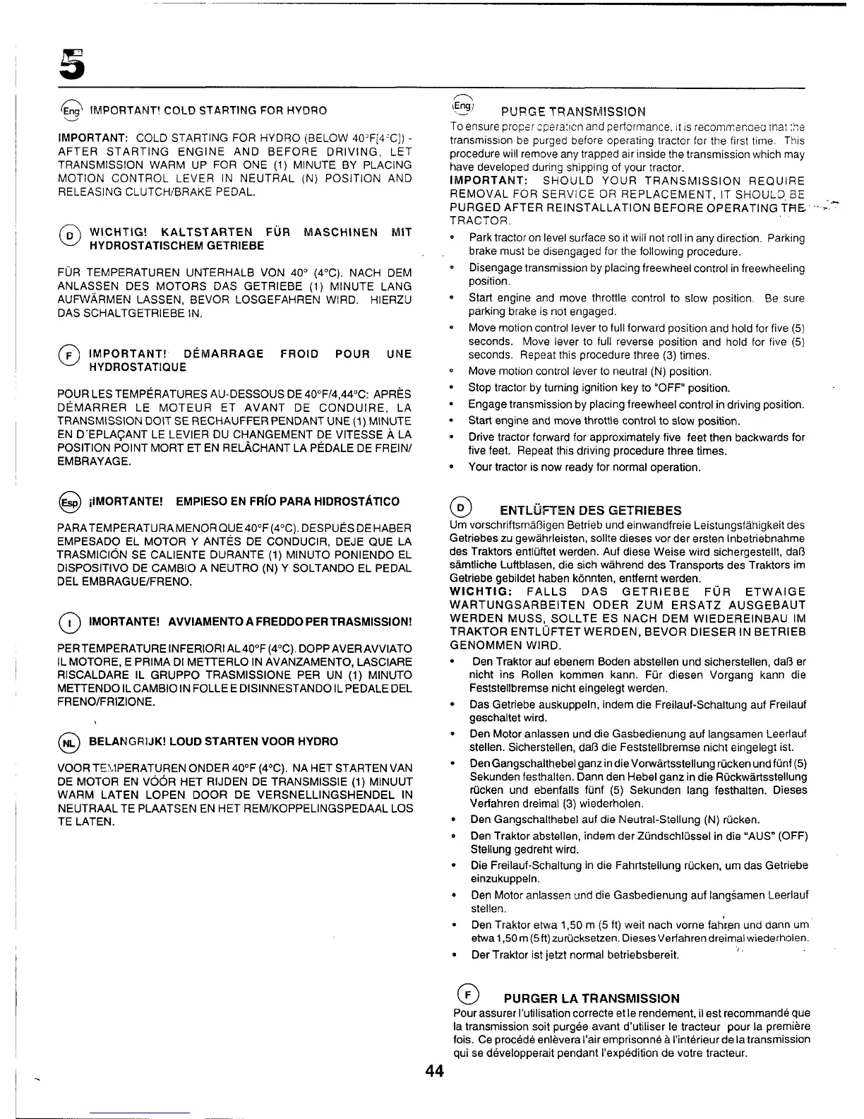 Husqvarna YTH160 - Transmission Purge; PURGE TRANSMISSION